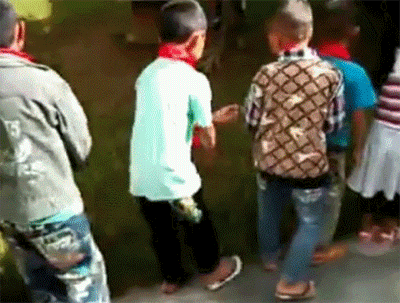 小朋友们学习电影里的对战情节