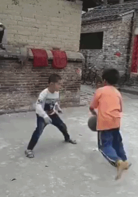 农村小朋友们的篮球活动