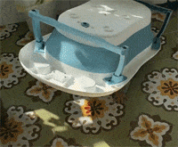 逆子学乌龟在地上爬来爬去,身上还盖着个洗澡盆