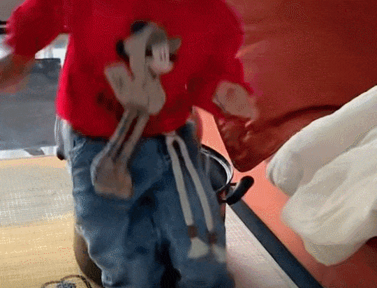 宝宝站到沙发上跳到姐姐肩膀上坐着,真的就是一个快…