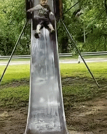 从滑梯下来再故意跳进水坑的宝宝,这个才是完整的童年