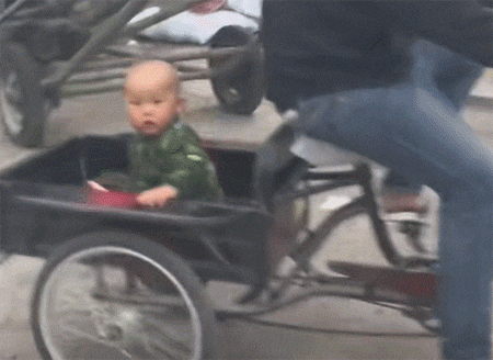 坐爸的三轮车被碰头了,这个爸真不靠谱啊