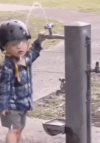 玩滑滑梯的小宝贝故意跳进水坑里,真是个难忘的童年