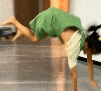 小朋友翻跟头把裤子跳掉了