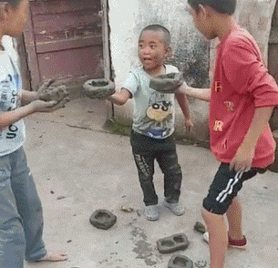 农村小孩玩泥巴的欢乐时刻,看谁砸得更响