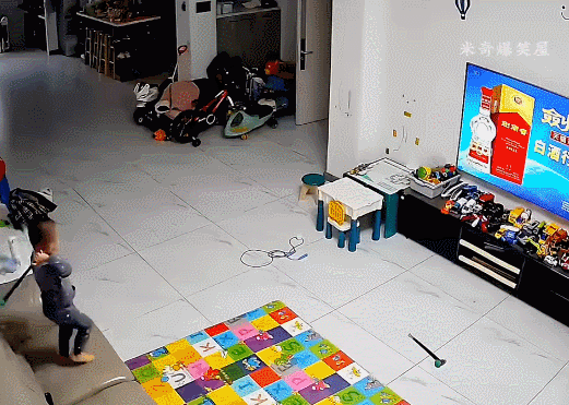 监控拍下熊孩子在家如何砸碎了电视机