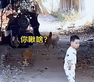 宝宝在鸡群中只看了它一眼,没想到被它追上来扑倒在地