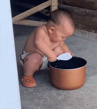 小女孩一不小心就坐进了锅里