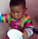 端起碗就向脸上倒的宝宝,搞得满脸是面条