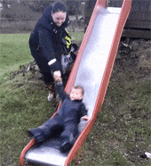 下方有水还让孩子玩滑滑梯,这下弄哭难哄了