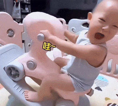 宝贝骑摇摇马,一不小心就翻车