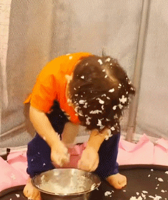 用米饭洗头的小宝贝