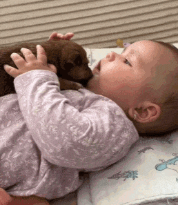 小狗狗爬到宝宝脸上亲亲嘴