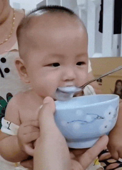 喝米粥吹泡泡的小宝贝