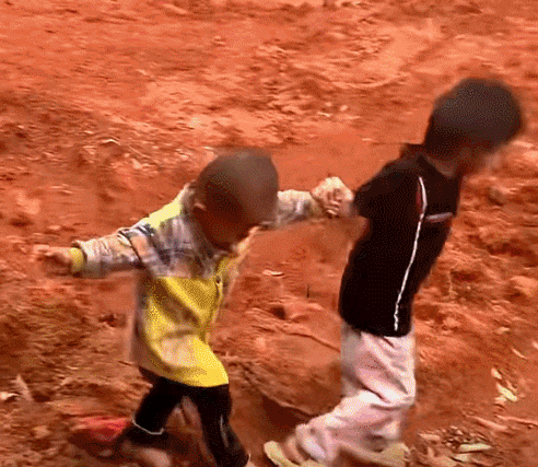 哥哥牵着弟弟跑得太快,摔翻在泥土上