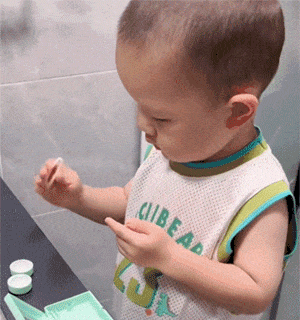 模仿妈妈戴隐形眼镜的小宝宝,真正的有样学样