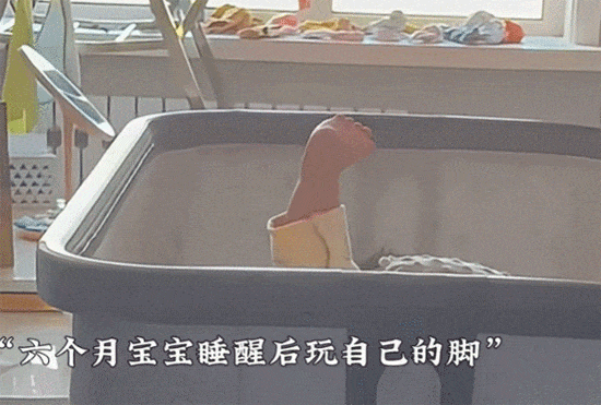 小宝宝睡醒后玩自己的小脚丫,真的可爱到爆