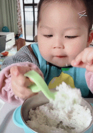 努力干饭的宝宝,就算是白米饭也吃得津津有味