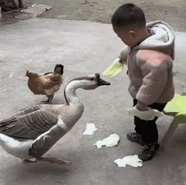 被鸭攻击的宝宝暴力反击,抓住鸭头又打又咬