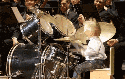 疯狂玩架子鼓的小男孩