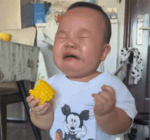 爱吃玉米的小朋友,虽然烫手也舍不得扔掉