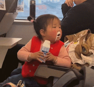 小宝贝喝酸奶变成了白胡子爷爷