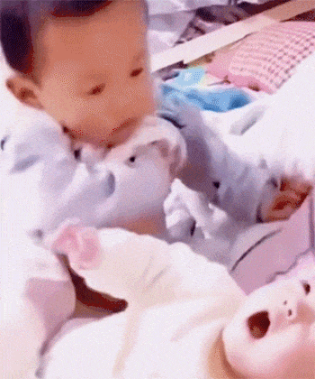 妹妹别哭啦!哥哥拿奶奶来喂你了