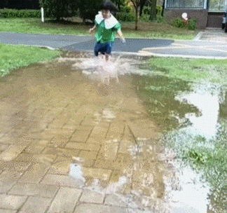 喜欢踩水的小女孩,结果被摔了一跤