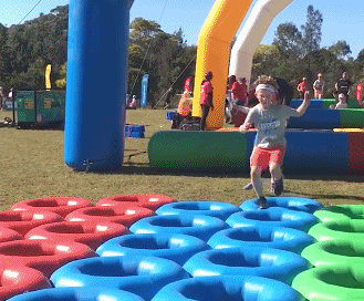 小朋友们比赛障碍跑,踩到坑里摔爬下了