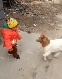 小宝宝被小羊顶翻在地,总算找到一个可以欺负的人了
