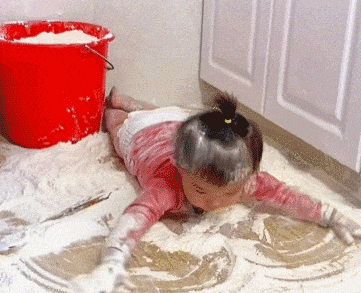 人类幼崽的捣蛋时刻,把面粉当沙子玩