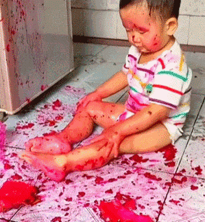 没想到给小宝宝吃火龙果会变成这样“血腥”的画面