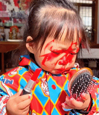 偷拿妈妈的口红在脸上画美妆
