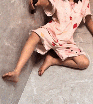 逆子学乌龟在地上爬来爬去,身上还盖着个洗澡盆