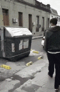 没事踩垃圾桶干什么?这下鼻子该遭罪了