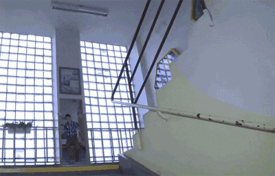 好好下个楼梯不好吗?非要翻栏杆摔一跤