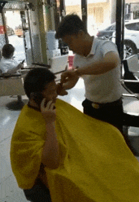 这是个很执着的理发师,剪头发时坚决不允许客人打电话