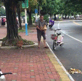 大爷随手把鸡放在电动车后座上,一点不担心会飞走