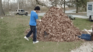 幸幸苦苦的扫到一起,没想到遇到一个捣蛋鬼