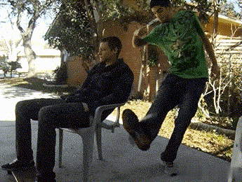 功夫没练到家,人没踢着,自己摔了一跤