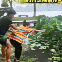 妈妈让儿子拽着衣服去摘荷花,结果脚下一滑,双双落…