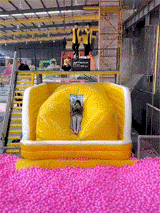 腾空飞高高的感觉真刺激,落进球堆里消失了