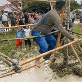 千万抓紧别放手啊!最终还是摔进了泥坑里
