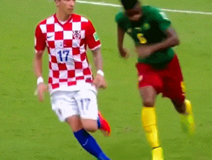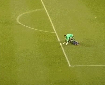 足球场上奔跑时被对手肘击,实在是太野蛮了
