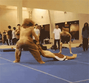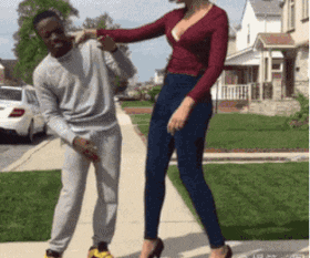 一黑人被一女子不停的推搡,最后还抱起来转圈圈