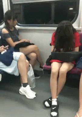 公交车上坐着一位犯困的女子,直接从座位上栽倒在地上