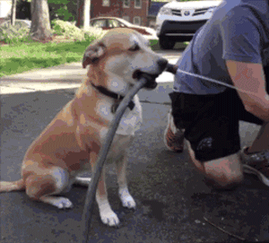 能帮助主人干活的狗狗才是好狗狗,嘴含管子帮忙洗车