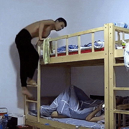 这宿舍的床也太不结实了吧?人爬上去就塌了,吓坏下…