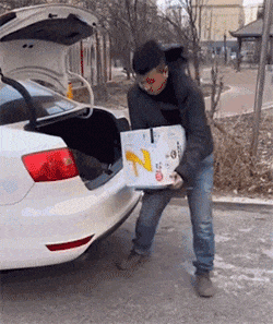 哥们抱箱啤酒一不小心摔碎了,赶紧捡起一瓶喝起来