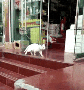 在店门口原地走路的猫咪,步伐如此的丝滑